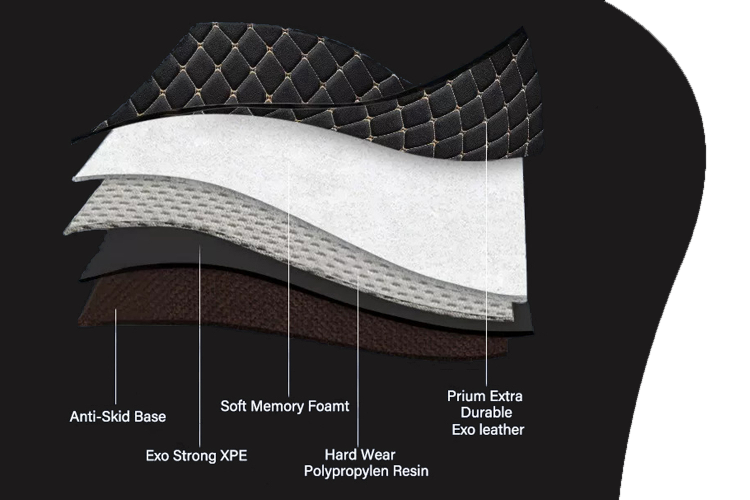 With years of research and development our team of designers have created a 5 tier structure leather car mat that is made to last.